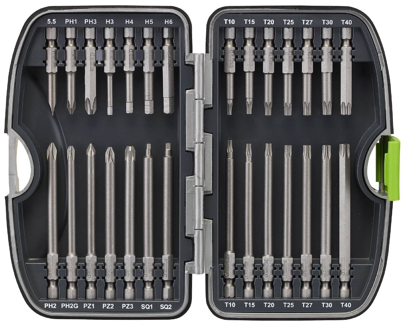 28 deler assortert bitssett. Leveres i plastetui. 1/4'' sekskantfeste.