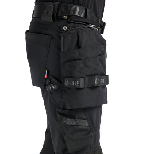 Håndverksbukse med smal passform laget av et litt tynnere, slitesterkt materiale med 4-veisstretch. Spikerlommer, baklommer, tommestokklomme, benlommer, knær og benavslutning er forsterket med Cordura. Avtakbare verktøylommer med verktøykroker og en ekstra lomme med glidelås. Stikklommer. Baklommer med belg. Lomme med belg, penn- og knivlomme, klaff med skjult magnetknapp. Tommestokklomme med knivholder og pennlomme. Knivholder med knapp. Avtakbar ID-kortlomme. To hemper i sidene med knapp for hammerholder. D-ring i linningen. Bred hempe bak. Gylf med plastglidelås. Metallknapper. Utvendig knebeskyttelseslomme forsterket med Cordura-stretch. Refleksdetaljer på bena.