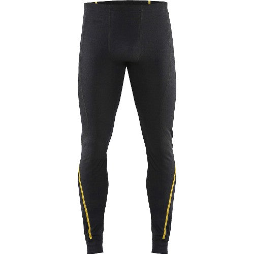 Lange underbukser i merinoull med iboende flammehemmende egenskaper. Strikk i midjen. Mansjetter ved benavslutningene. Kontrastsømmer. Eksterne sertifiseringsetiketter. Kan vaskes på 60 °C.