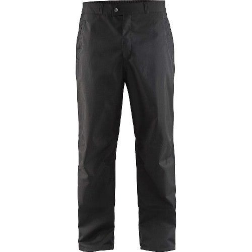 Vind- og vanntett skallbukse med tapede sømmer og pustefunksjon. Frontlommer med glidelås. Baklomme med klaff. Gylf med plastglidelås og knapp i linningen. Strikk i midjen. Hemper. Forbøyde ben. Åpne- og justerbare benavslutninger med glidelås og borrelås. Refleks nederst på bena. Meshfôr. Vannsøyle 15000 mm. Pusteevne 8500 g/m²/24 timer. Vaskes på 40 °C.