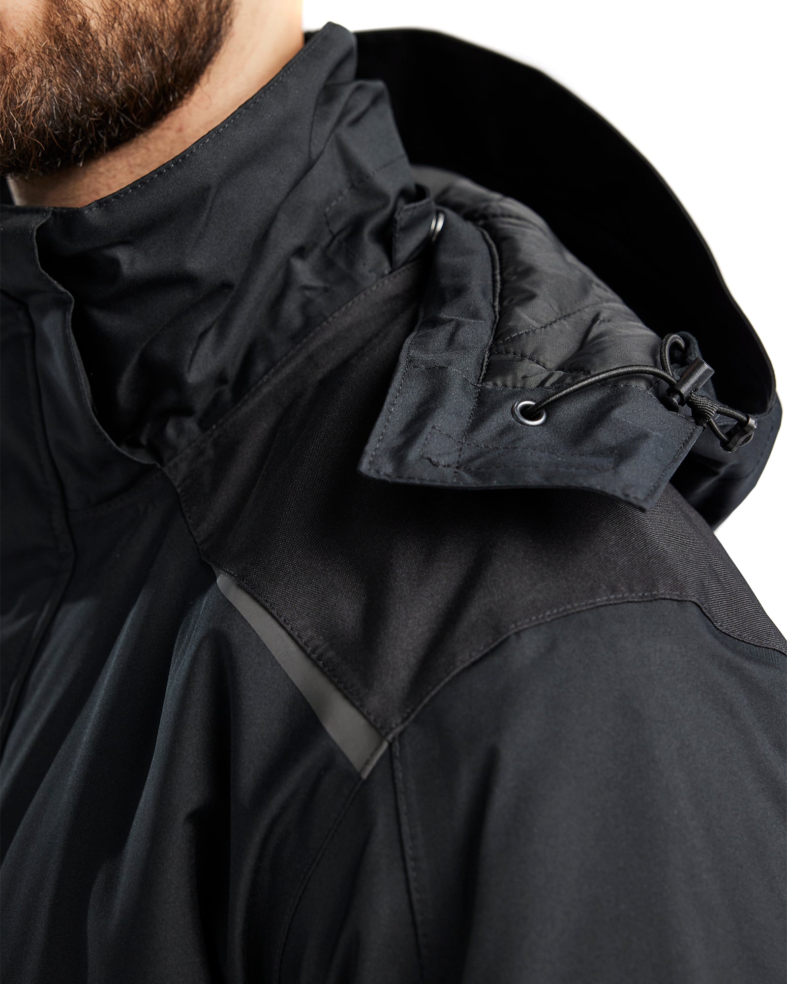 Vind- og vanntett vinterjakke med tapede sømmer, fleeceforet krage og justerbar, avtakbar hette. Den har meshpaneler på utsatte områder for å transportere fukt bort fra kroppen. Jakken er utstyrt med en rekke lommer, for eksempel brystlomme for penner eller mobiltelefon, innvendig lomme og frontlommer i fleece med glidelås. Diskret refleksdetaljer er plassert foran, bak og på ermer. Ermeavslutningen er justerbare med borrelås og innvendige mansjetter med tommelhull.