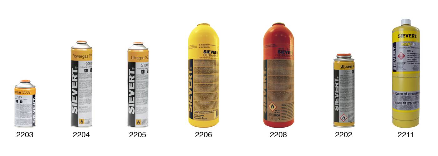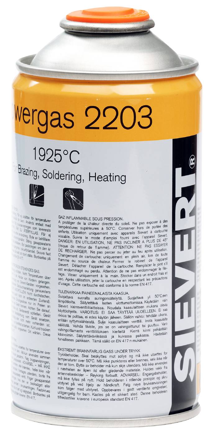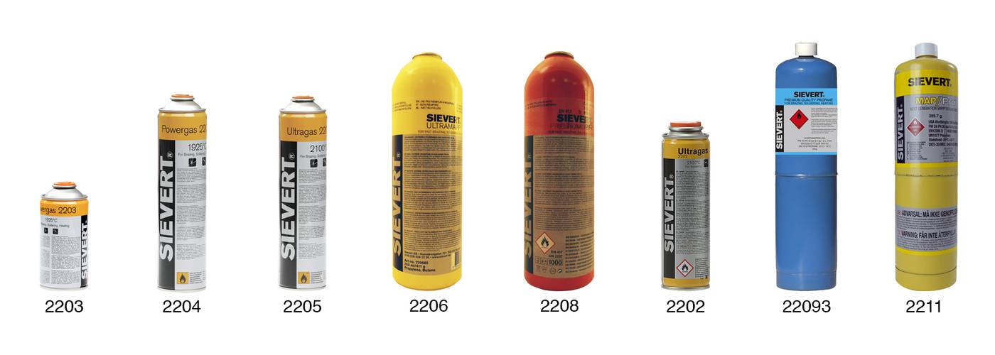 Engangs gassbeholder med sjelvstengende utløpsventil.