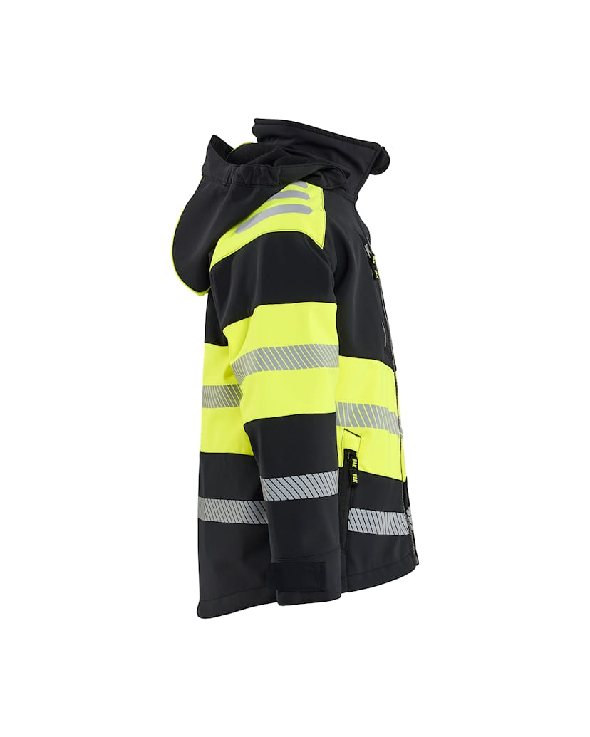 En lett softshelljakke for barn i et fantastisk mykt, komfortabelt og fleksibelt materiale. Jakken er tofarget med overveiende mørke partier, som gir god bestandighet mot smuss og utmerket synlighet når det trengs som mest.