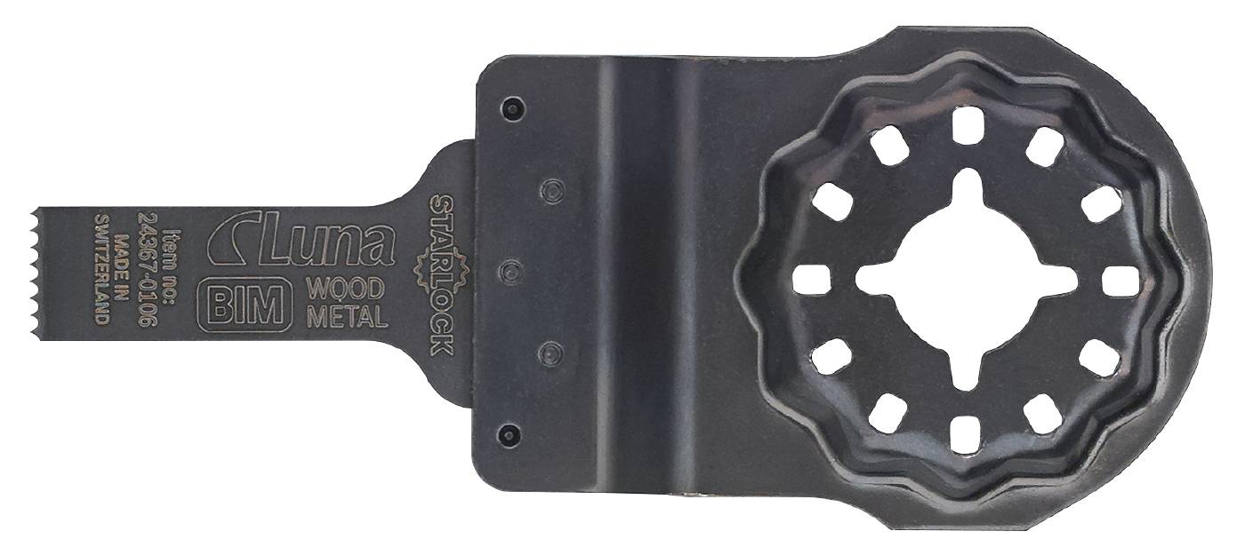 Innstikksagblad av bimetall, passer til maskiner med Starlock innfesting, Starlock Max innfesting og Starlock Plus innfesting. Bakoverkompatibel med de fleste multi-cutter maskiner på markedet. Egnet for finsaging av ikke jernholdige profiler og tre. Brukes f.eks. for utsaging av låsekister og små uttak.
