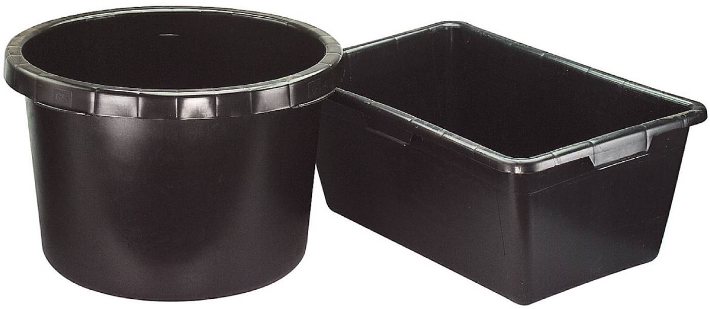 Av svart, resirkulert plast.