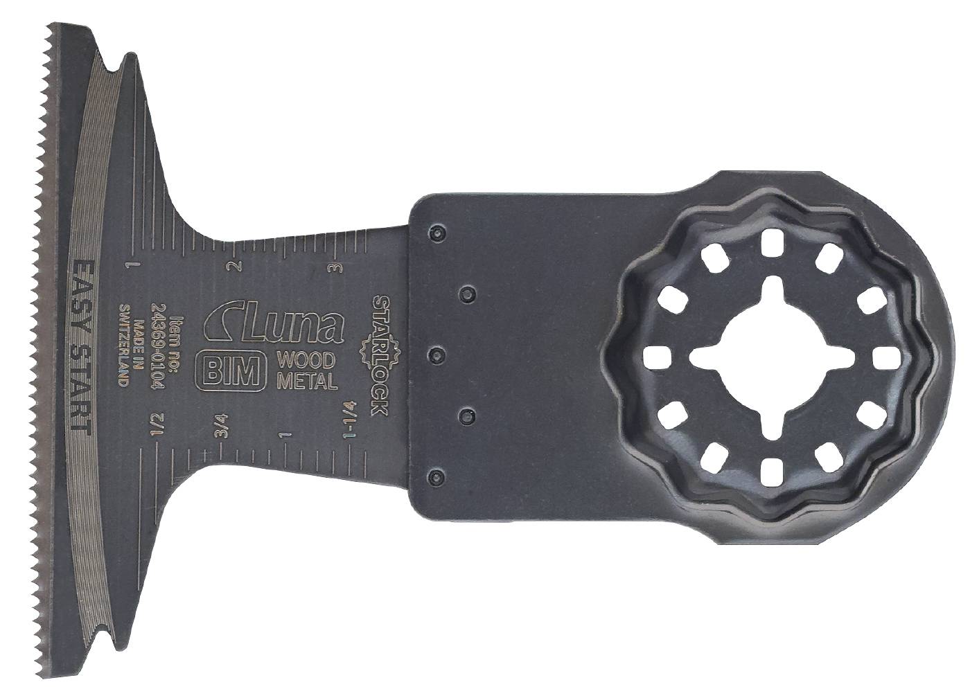 Innstikksagblad av bimetall, Easy start forenkler ved innstikk av sagbladet ved plane flater. Passer til maskiner med Starlock innfesting, Starlock Max innfesting og Starlock Plus innfesting. Bakoverkompatibel med de fleste multi-cutter maskiner på markedet. Egnet for saging i tre med spiker, mykt og hardt tre samt uttak i laminat.