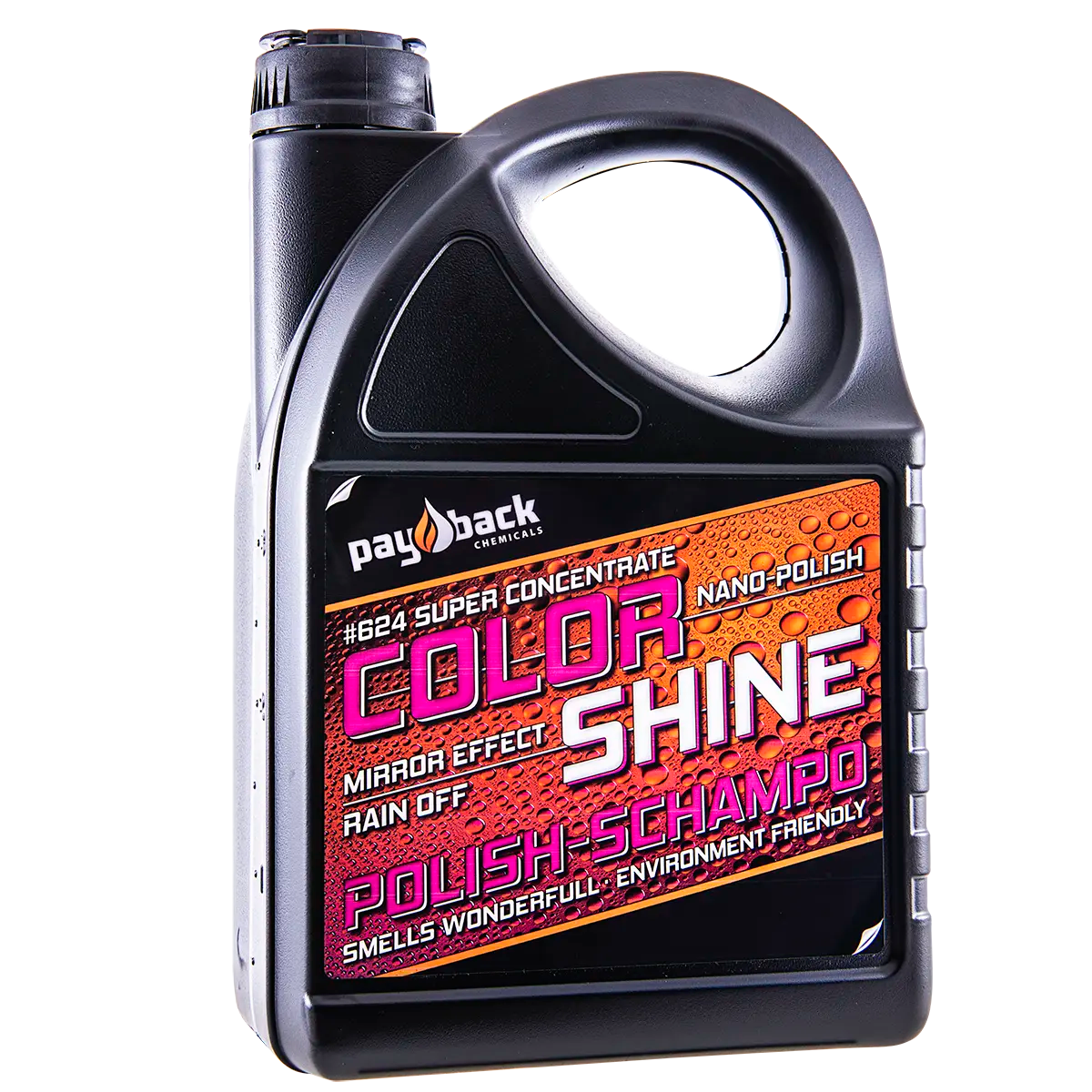 Color Shine er bilshampoo for den kresne. Inneholder alt du ønsker: Nano-polish voks, høy glanseffekt, lakkbeskyttelse, antistatisk effekt, skummer godt, høy vannavrenning, velduftende, pH-nøytral og høykonsentrert.