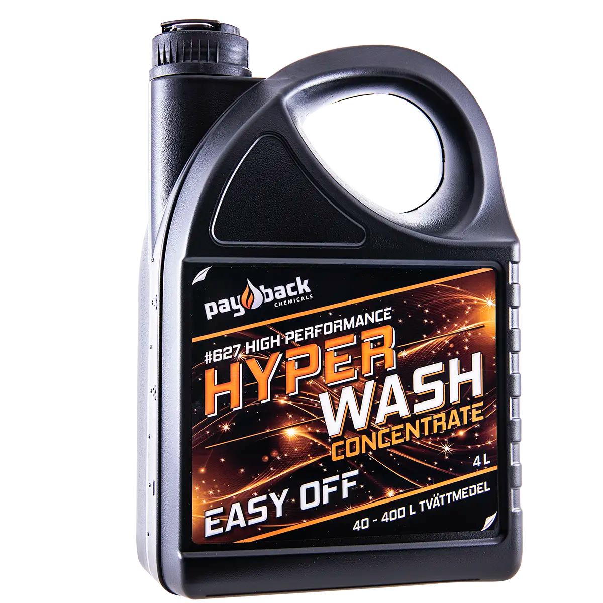 Hyper Wash er vår mest effektive, alkaliske bilshampoo. Fjerner trafikkfilm, smuss, sot, insekter, fett, olje og veisalt uten berøring, kun spyling med høytrykkspyler. For rask og enkel vasking.