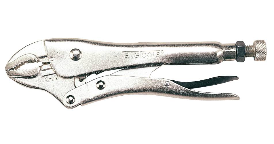 Selvlåsende. Riflet, stillbare kjefter med rørgrep og avbiter. Med utløserarm. Forniklet.