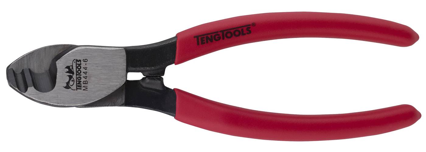 For kobber- og aluminiumskabler. Med klemvern. To klippeposisjoner. Vendbare håndtak - kan brukes til avisolering av kabelen. Enhåndsfunksjon med to klippeposisjoner. Plastbelagte håndtak.