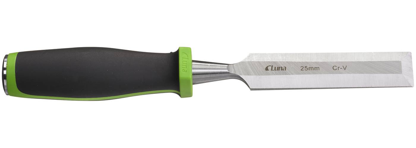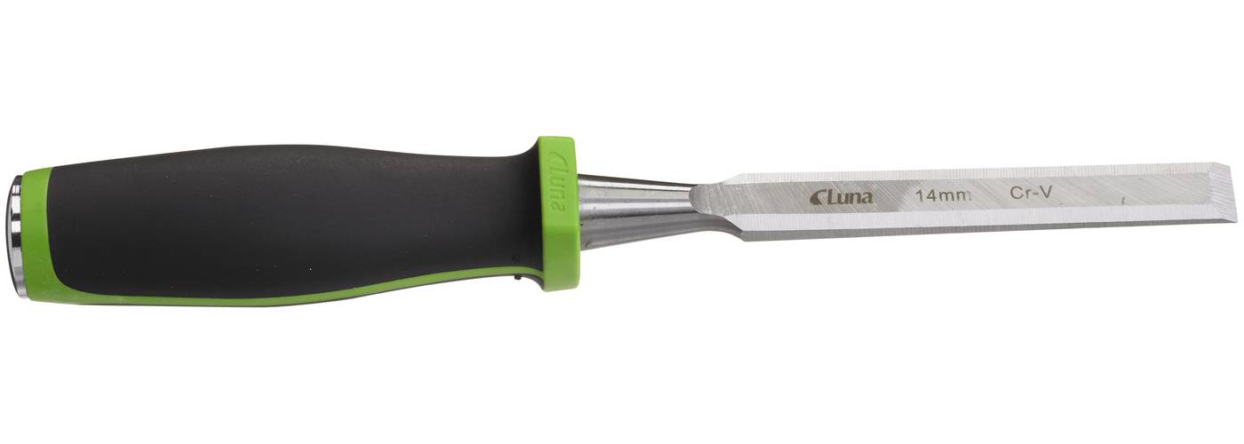 Stemjern med grepsvennlig tokomponentshåndtak. Gjennomgående klinge med slagkappe. Skarpslipt blad av CRV med 30 grader eggvinkel.