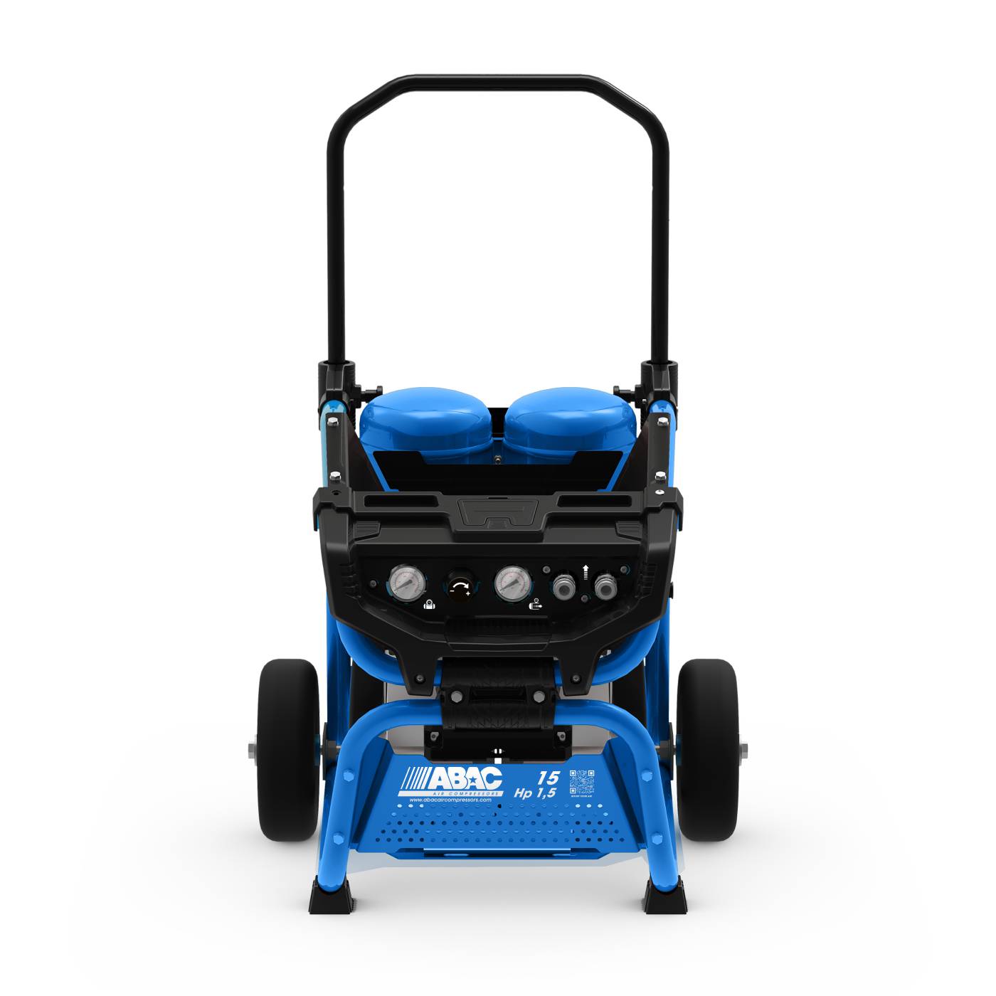 ABAC Go-Kart er utstyrt med et fellbart håndtak og store hjul for å kunne oppbevares i servicebilen og smidig kunne transporteres rundt på arbeidsplassen. Også utstyrt med doble hurtigkoblinger for luft samt oppbevaringsrom til f.eks. spikerpistolen.