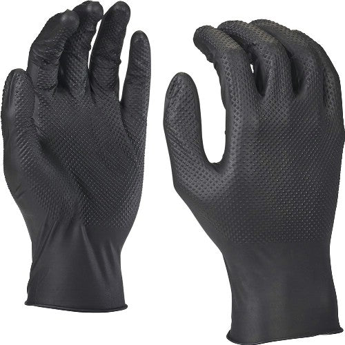 Holdbar og slitesterk engangshanske i nitril med en tykkelse på 0,2 mm. Håndflaten har et strukturert diamantmønster for forbedret grep på metallverktøy eller oljete overflater. Kjemikaliebestandig for beskyttelse mot olje, bensin, bremsevæske og løsemidler. Utformet for å gi god fingerfølelse ved håndtering av små gjenstander. Smartswipe-touchfunksjon på fingertuppene gjør det mulig å bruke berøringsskjermer. Leveres i 50-pakning.