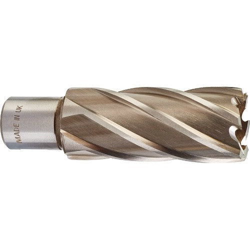 Tykkveggede HSS kjernebor for forlenget holdbarhet og levetid. Med standard 19 mm Weldon - feste. 50 mm kuttedybde.