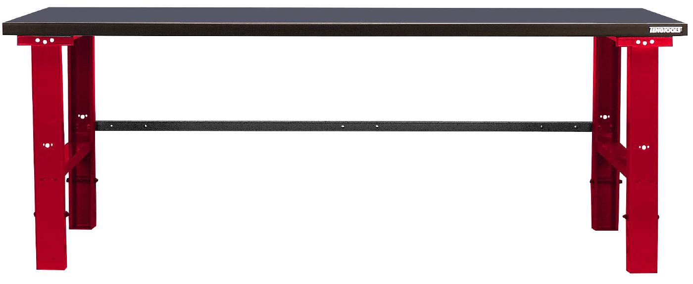Arbeidsbenk med kraftig laminatplate - granittmønstret arbeidsflate og svart sidekant. Arbeidshøyden er justerbar mellom 707 og 927 mm.